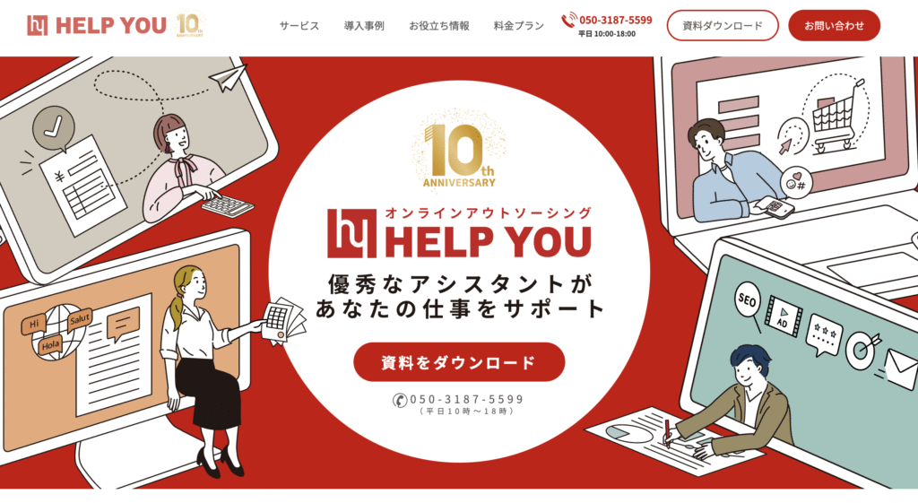 ニットの「HELP YOU」は、経理業務に特化したサービスではなく、バックオフィス全般をサポートするオンラインアシスタントサービスです。記帳代行や経費精算、給与計算といった経理業務はもちろん、採用業務や総務、マーケティング、秘書業務まで幅広く対応してくれます。