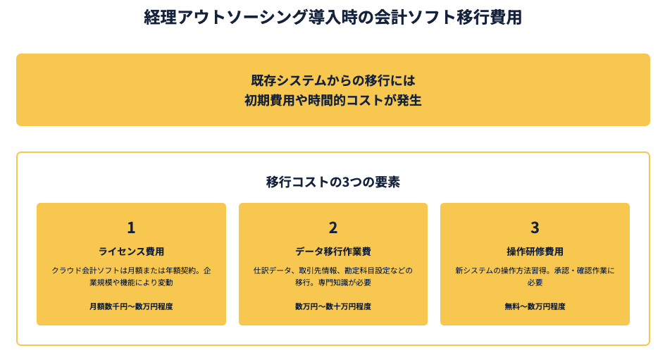 経理アウトソーシング導入時の会計ソフト移行費用