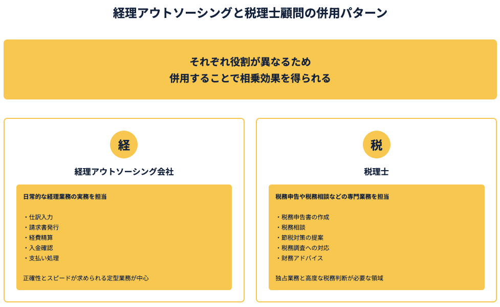 経理アウトソーシングと税理士顧問の併用パターン