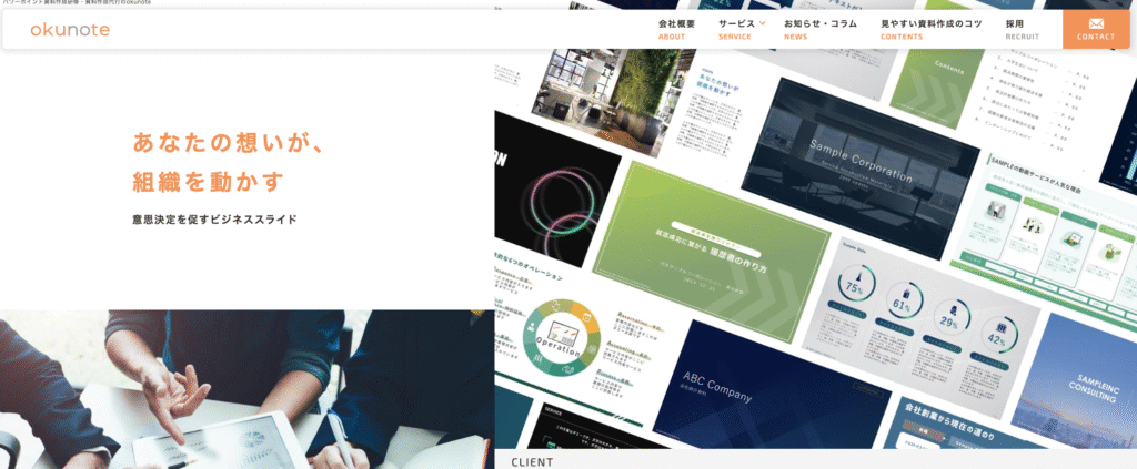 okunoteは「読み手の意思決定や行動を促す」ことに特化した資料作成代行会社です。単に見た目を美しく整えるだけでなく、ビジネスの成果に直結する資料作成を得意としています。