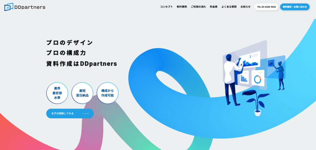DDpartnersは「スピーディーな対応をモットーに」を掲げ、最短翌日納品という業界トップクラスのスピード対応を実現している資料作成代行会社です。合同会社ソフィアメリオが運営しており、柔軟性の高いサービスが特徴となっています。