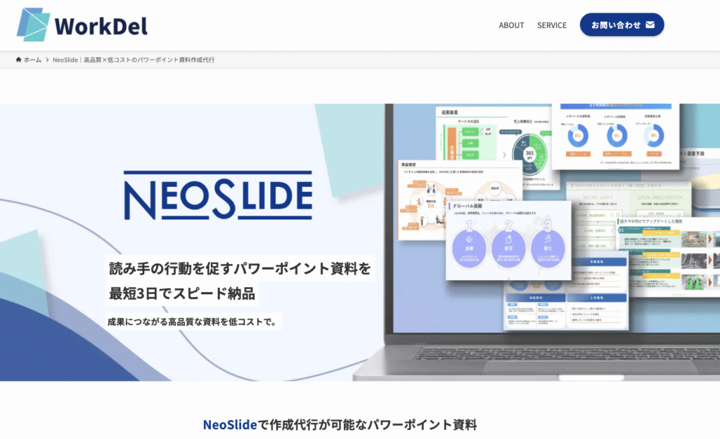 同社の強みは、価格を抑えながらも品質に妥協しない姿勢。資料作成代行業界では「安いから品質が悪い、高いから品質が良い」という先入観がありがちですが、NeoSlideはその常識を覆すサービスを展開しています。品質に自信を持ちながらも、効率的な運営により低コストでの提供を実現している点が評価できます。
