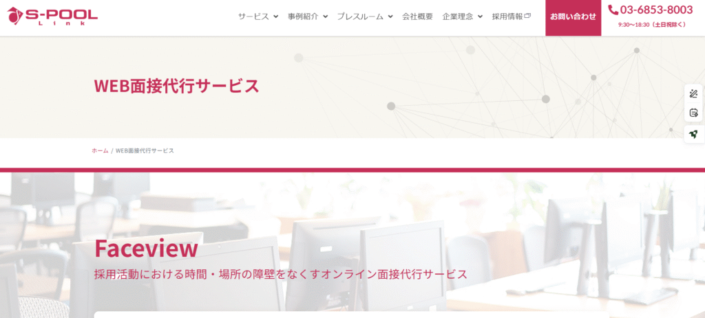 株式会社エスプールリンクが提供するFaceview(フェイスビュー)は、Web面接代行サービスに特化。オンライン面接に特化することで、来社不要の効率的な面接代行を実現しています。