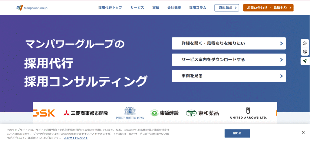 おすすめポイント:手厚いサポートと柔軟な対応力が魅力。大規模採用を予定している企業や、短期間で集中的に採用活動を行いたい企業に向いています。複数の拠点で同時に採用を進める必要がある場合にも最適です。