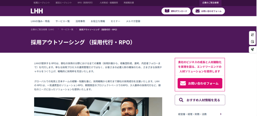 料金体系:月額固定型で、初期費用5万円~、月額40万~100万円が目安。採用規模や依頼内容に応じて変動します。