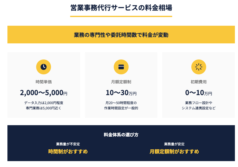 営業事務代行サービスの料金相場