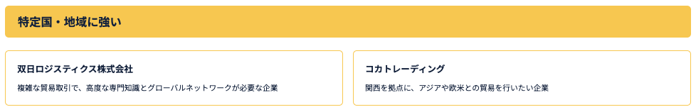 | どんなケースにおすすめか | 関西を拠点に、アジアや欧米との貿易を行いたい企業 |