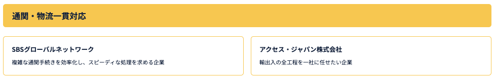 | どんなケースにおすすめか | 輸出入の全工程を一社に任せたい企業 |